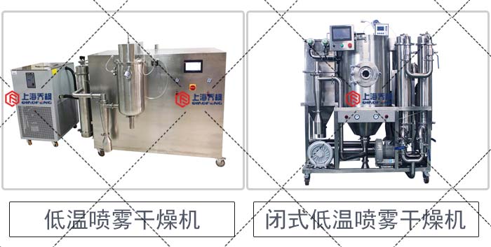 一直以來呢,熱敏性物料的快速干燥問題困擾著很多科研人員,普通的真空干燥和噴霧干燥,對物料的生物活性或物料結構都有較大的破壞,冷凍干燥干燥時間長,能效低,且干燥后的物料成塊狀,需要第二次粉碎。經過上海喬楓研發團隊的長期接觸和研究,意識到低溫噴霧干燥能有效解決科研人員在熱敏物料干燥上的問題,精心研制開發了新型低溫噴霧干燥機,該機充分保留了
